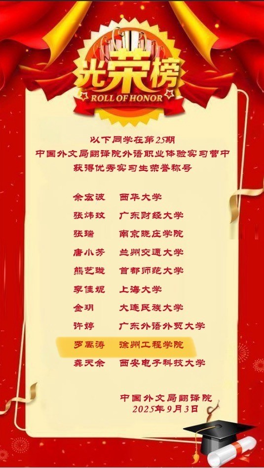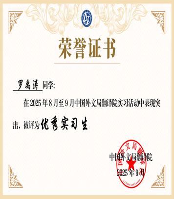 在此次实习中,罗禹涛同学表现突出,被评为“优秀实习生”,充分展现了williamhill威廉希尔学生在国际传播与翻译领域的潜力与能力。此次实习不仅是一次宝贵的学习经历,也为学生未来职业发展奠定了坚实基础。
