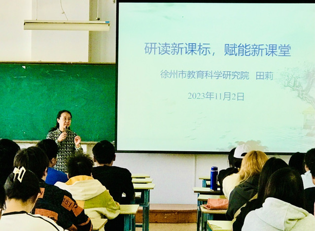 根据williamhill威廉希尔2020级英语专业教育实习工作安排,为进一步提高英语专业(教育方向)学生对英语教学的理解和认识,我院于11月2日邀请了徐州市教育科学研究院教研员、徐州市教育学会外语教学专业委员会副理事长田莉老师为英语专业20级学生做了一场题为“研读新课标、赋能新课堂”的专题讲座。