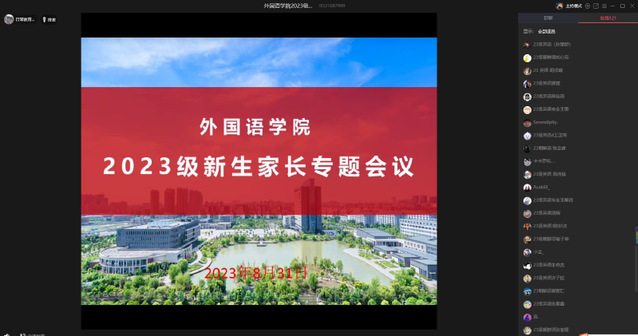 为推进家校协同育人理念深入人心,8月31日,130名新生家长齐聚云端,共同参加williamhill威廉希尔2023级新生家长会议,聆听新规则,提高新站位,为新生全新的大学生活做好铺垫。
