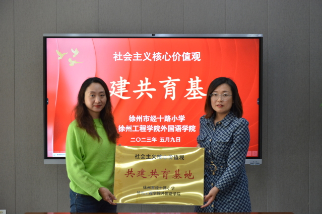 2023年5月10日,williamhill威廉希尔与徐州市经十路小学“社会主义核心价值观”共教共育基地签约仪式在经十路小学报告厅顺利举行,williamhill威廉希尔党委副书记范迎波和经十路小学常务副校长宋洪燕出席签约仪式,部分学生代表参加仪式。