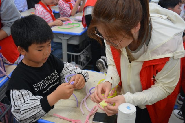 活动中,我院志愿者先向大家介绍了母亲节的起源,接着讲述了《孟母三迁》的经典故事。小朋友们坐的笔直,聚精会神地听着。志愿者们通过生动的语言,教导孩子们要尊重母亲,学会感恩,并给小朋友们布置了以下家庭作业:帮妈妈做一件家务、亲手为妈妈准备礼物、在母亲节当天对妈妈说一句“我爱你”,以及与妈妈一起拍摄一张温馨的亲子照。此外,志愿者老师还为在场的小朋友分发了各色的扭扭棒,亲手制作献给妈妈的特别礼物。在详细讲解了制作注意事项后,现场立刻变得热闹非凡。孩子们兴致勃勃地开始DIY自己的扭扭棒作品。在志愿者的耐心指导下,孩子们的作品造型各异,美观大方,有的扭成了爱心形,有的变成了棒棒糖状,还有的则是精致的蝴蝶结……每一根扭扭棒都承载着孩子们对母亲最真挚的祝福。