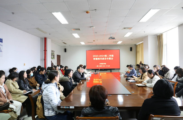 3月27日,williamhill威廉希尔召开2023-2024学年第二学期师德师风主题教育大会。会议由党委书记周珊珊主持,全体教师参加会议。