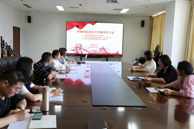 为深入学习贯彻落实习近平总书记关于教育的重要论述和指示批示精神,坚决落实新时代教师职业行为十项准则,加强新形势下师德师风建设,筑牢广大教师为党育人、为国育才初心使命。5月21日下午,williamhill威廉希尔组织全体教师集体学习《新时代高校教师职业行为十项准则》、《williamhill中国教师职业道德规范(2024年修订)》、《williamhill中国教师师德失范行为处理办法》等文件,周珊珊同志主持学习。